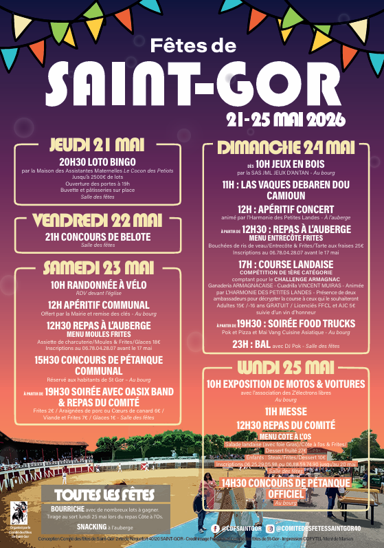 - Temas Apéro-concierto, Bail, Juegos de sociedad, Petanca, Senderismo, Tauromaquia, Deporte ciclista