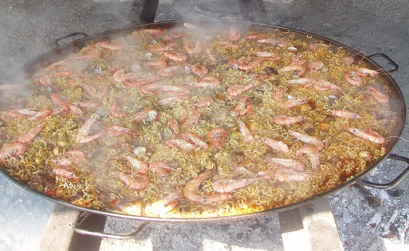 En el menú: Paëlla, ensalada/queso, postre/café, vino incluido.