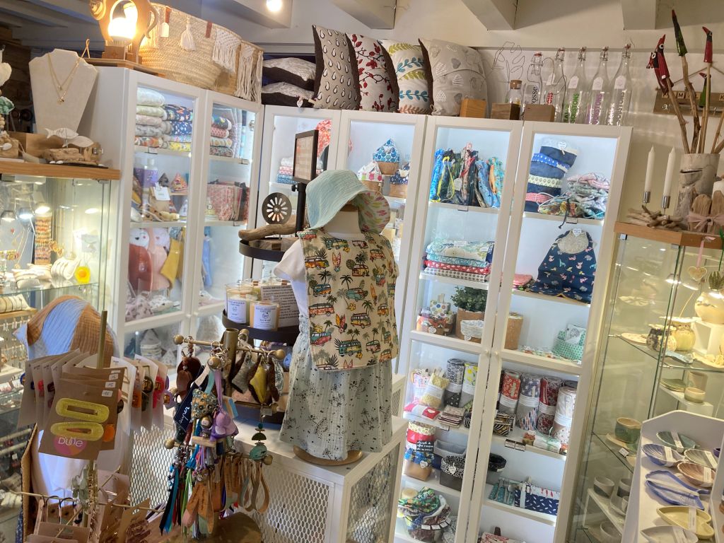 El espacio, cálido y colorido, ofrece una amplia gama de artesanía local para todos los bolsillos, desde bolsos y cojines hasta regalos para bebés, pasando por joyas y objetos decorativos de madera de deriva, cosméticos ecológicos y velas naturales, bolsas de agua caliente de piedra de cerezo, cerámica e incluso cajas de música para dormir a los bebés Como se trata de artesanía local, también es posible personalizar o crear algunos artículos por encargo.