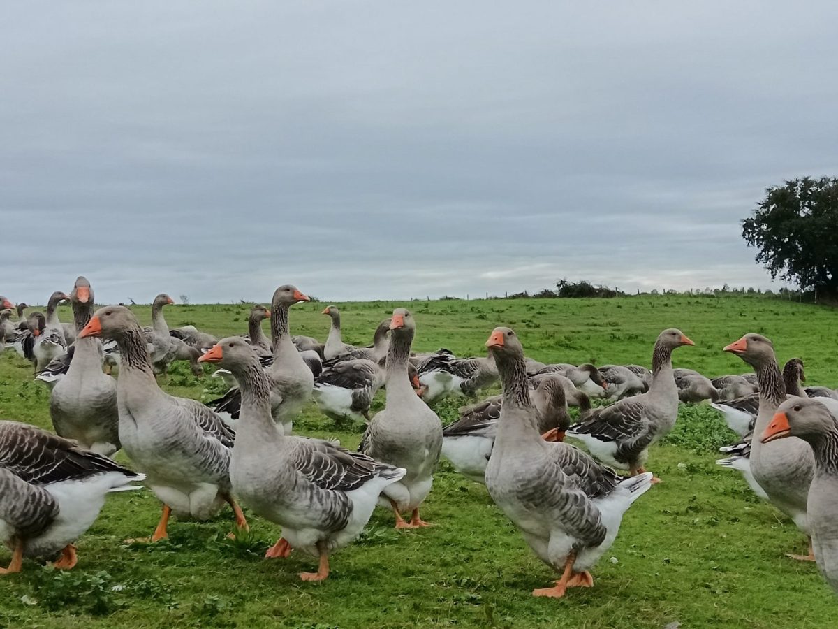 No dude en venir hasta la granja, Marie-Pierre le hará visitar su laboratorio a las normas CEE y el conjucto de la granja con las explicaciones detalladas sobre los productos : foie gras y confits de oca y de pato. Las ocas son alimentadas al maíz producido por la granja, como en la pura tradicción.