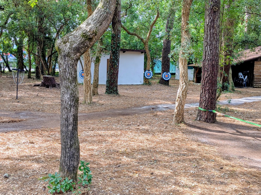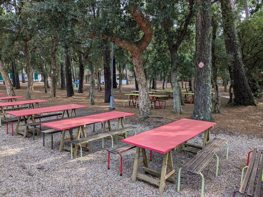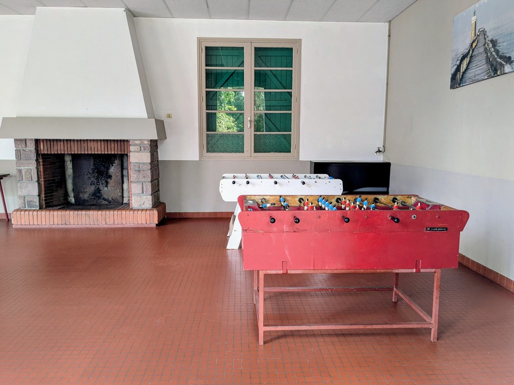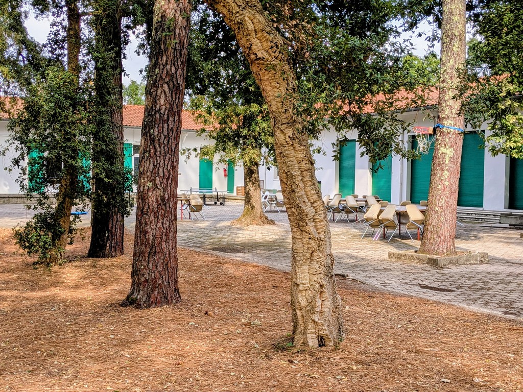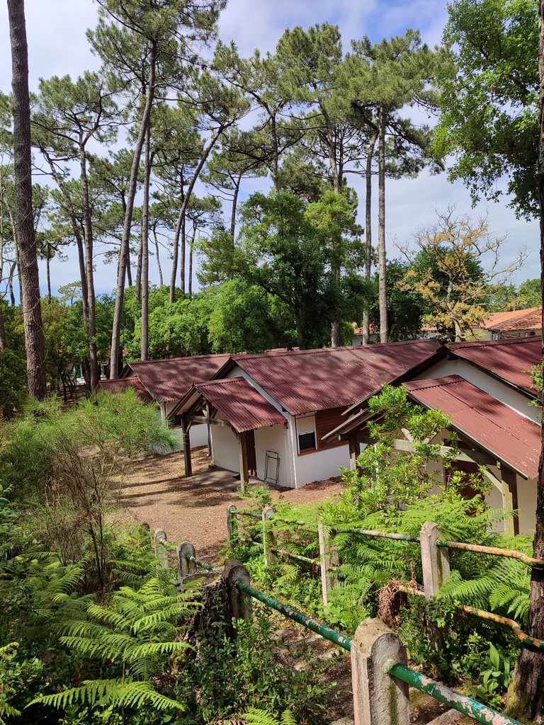 11 bungalows y 4 salas polivalentes en un gran parque arbolado con zonas de juego (ping-pong, tiro con arco, bádminton, voleibol, baloncesto, etc.).