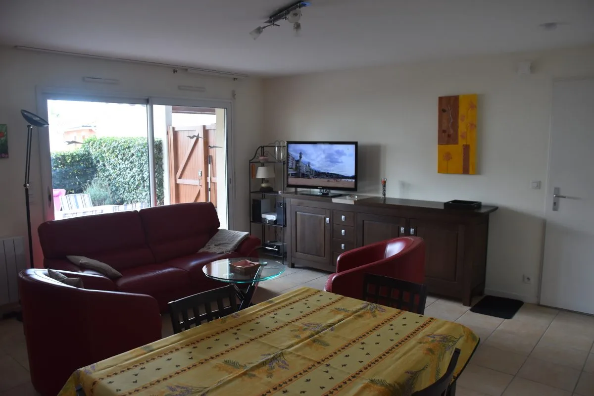 Bonito y tranquilo apartamento. En la planta baja, a ras del jardín, sala de estar con cocina equipada, lavadero, dormitorio con dos camas de 90 cm y baño completo. El segundo dormitorio se encuentra en la primera planta y tiene una cama de 140 cm, baño completo y terraza. Para disfrutar del sol cuenta con una terraza en patio con mobiliario de jardín completo y valla vegetal. Comodidad y facilidades para descubrir Biscarrosse y sus alrededores. Está a 9 km de la playa, 5 km del lago y 200 m del centro del pueblo.