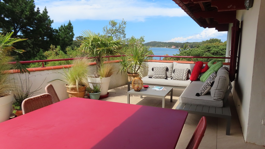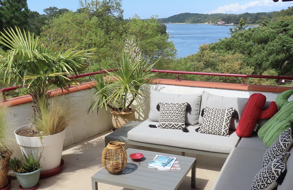 Su punto fuerte es una magnífica terraza de 50m² orientada al oeste, al sur y al norte, donde podrá disfrutar de todas sus comidas y relajarse a la sombra o al sol, con una vista impresionante sobre el lago marino y el canal.