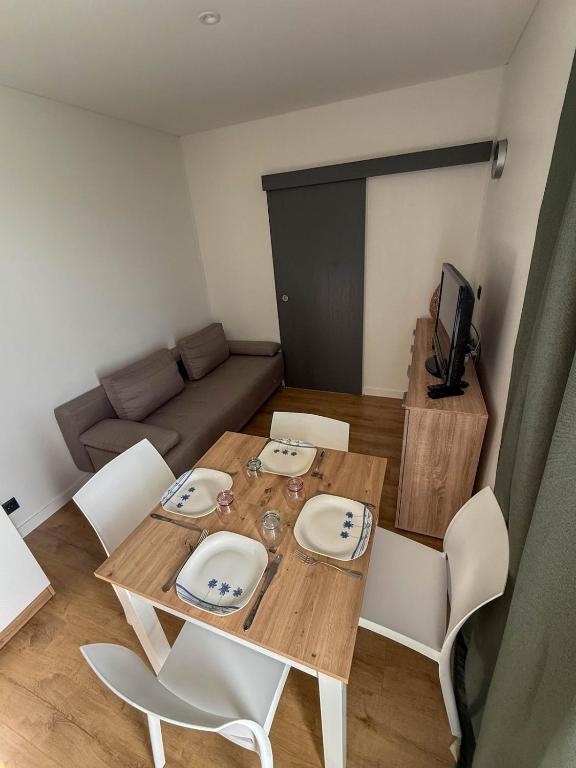 Bienvenido a Krystel, en Gamarde-les-Bains, Chalosse. Esta casita moderna y bien equipada es ideal para sus vacaciones o tratamientos de spa. El Box des Oiseaux dispone de una cocina americana y una pequeña sala de estar con sofá y televisión. También hay una zona de comedor, y le encantará la terraza de madera con sus impresionantes vistas de las colinas de Chalosse. En un día despejado, tendrá incluso el privilegio de comer con vistas a los Pirineos. Es un lugar tranquilo y relajante. El dormitorio tiene una cama doble y un ventanal que permite admirar el paisaje exterior. El cuarto de baño es muy funcional, con una cómoda ducha.
