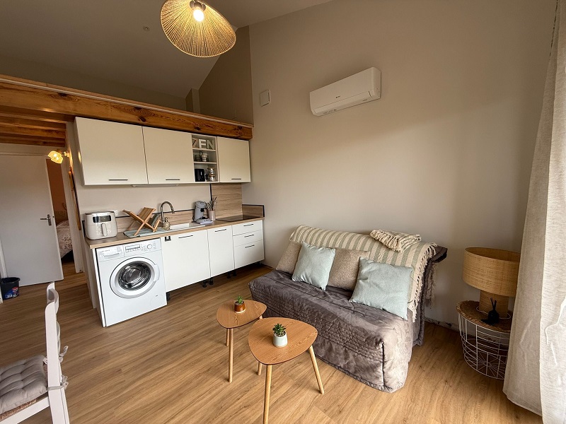 Aunque esté cerca del centro, podrá apreciar la calma. Ideal para una estancia tranquila. Tendrá acceso a la lavandería y a la piscina de la residencia Les Genêts en las alturas de la estación.