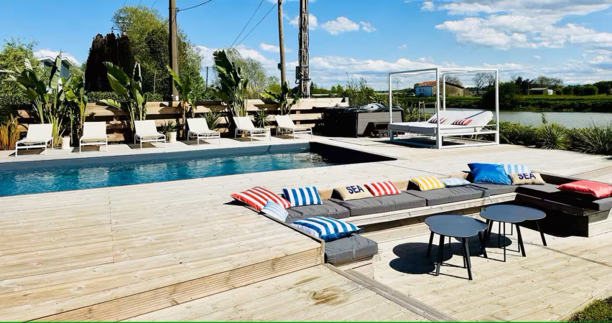 Encantadora casa en plena naturaleza, a orillas del río. Situada en las Landas, en el pueblo de Port de Lanne, en un entorno excepcional a orillas del Gave. Aguas azul verdosas, posibilidad de bañarse y practicar actividades náuticas (paddle surf, piragüismo, barca).