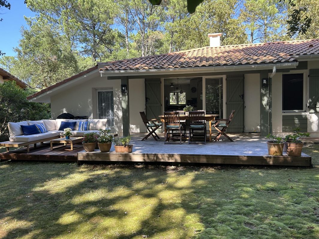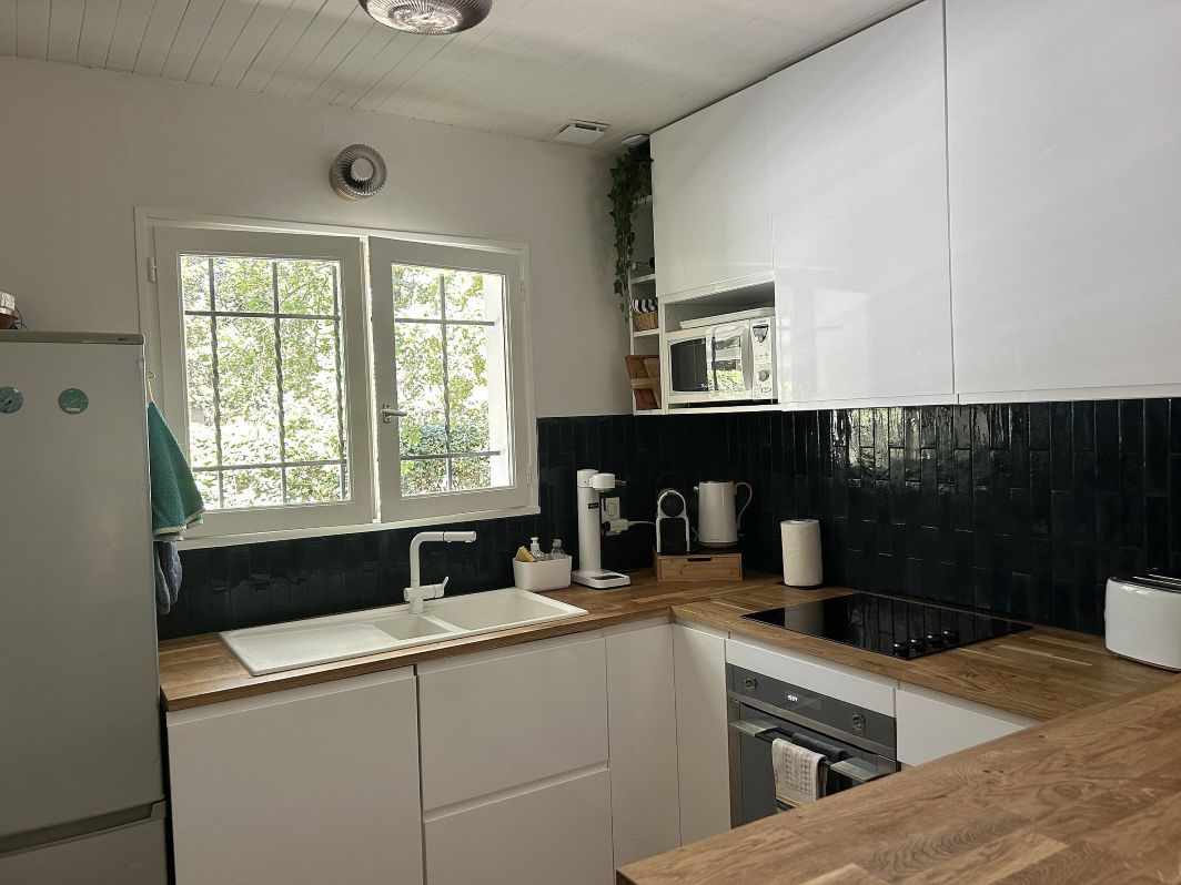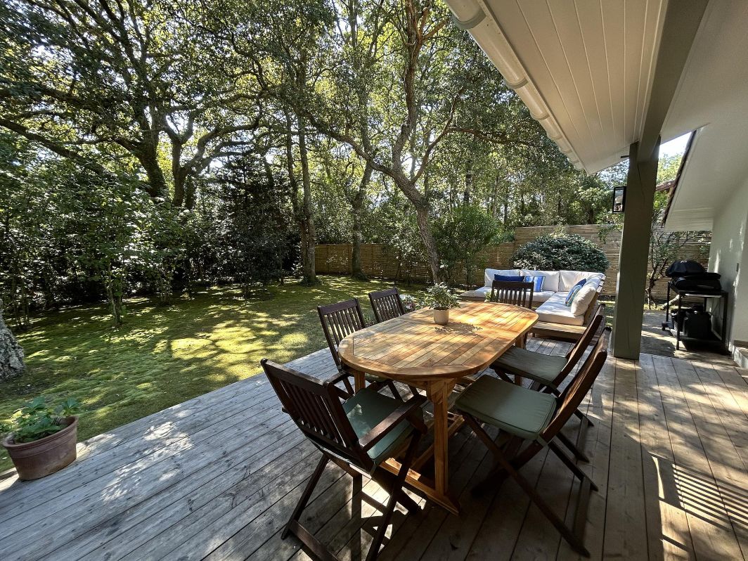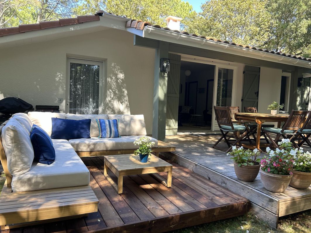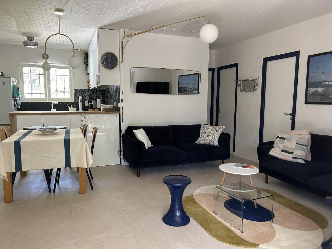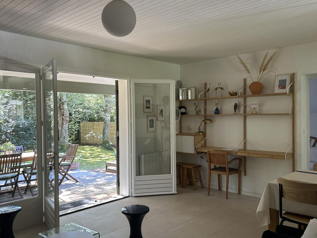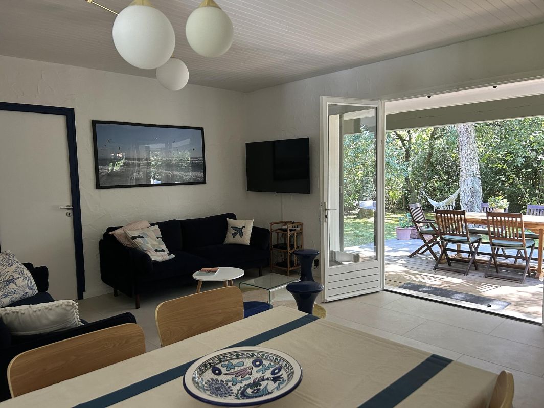 el salón da a la terraza y al jardín e incluye una cocina americana totalmente equipada.
