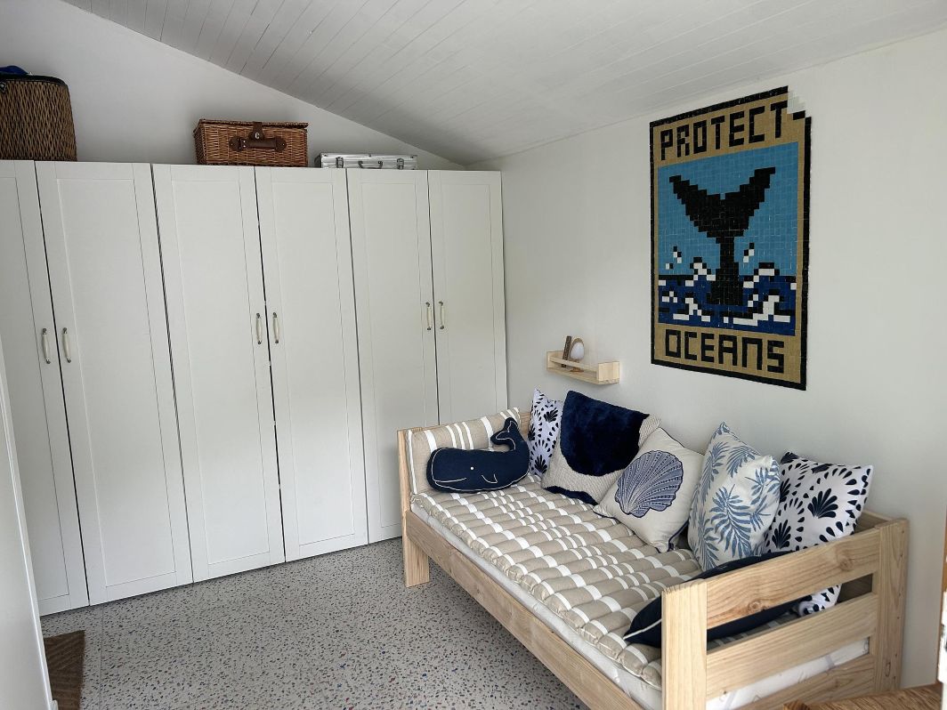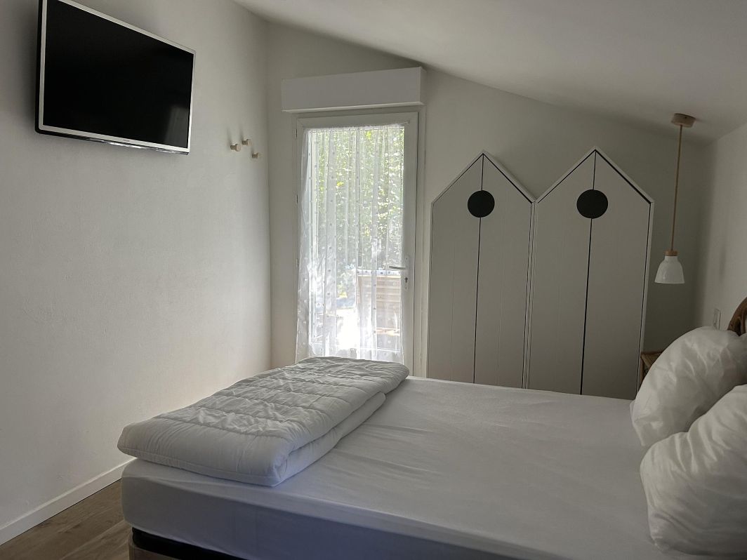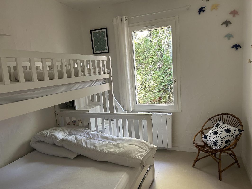 -1 dormitorio con cama de matrimonio (140cm) y una litera (90cm)