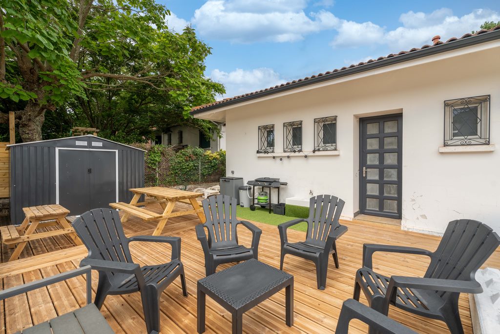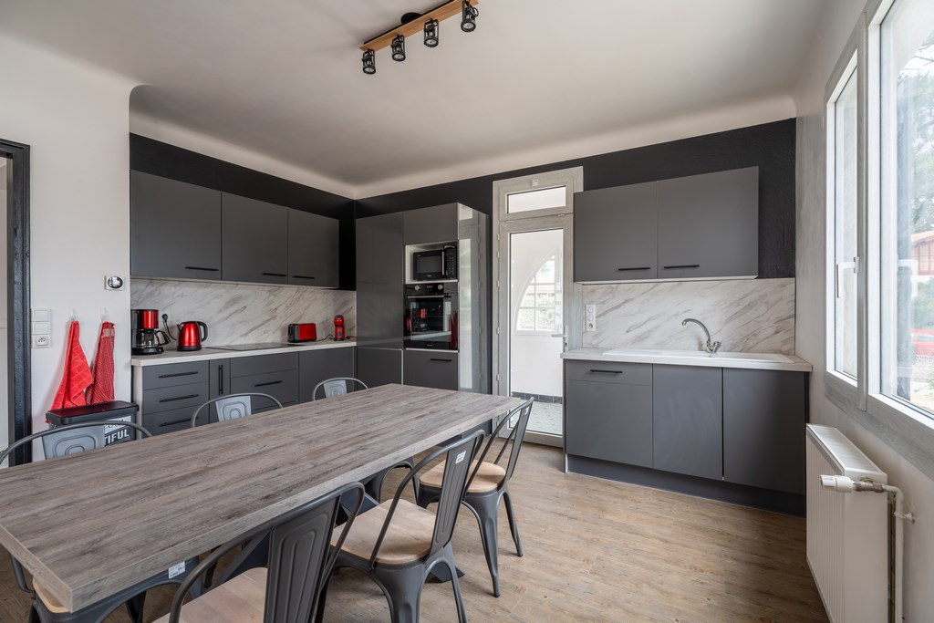 En el exterior, hay una bonita terraza orientada al sur con cocina de gas, muebles de jardín y una gran mesa.