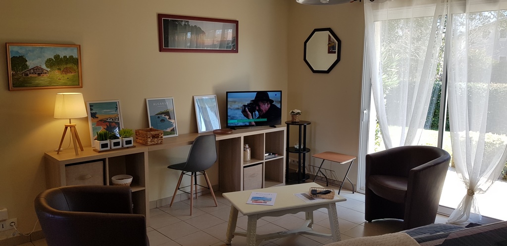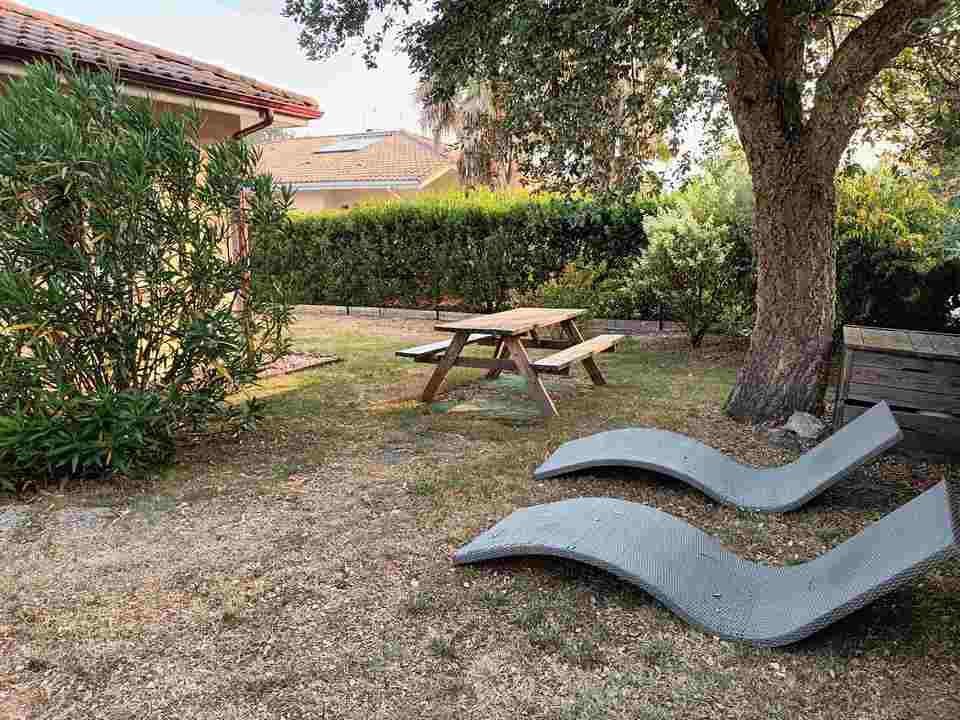 Bonito chalet adosado para 4 personas (6 máx.), situado junto al lago de Aureilhan. Jardín florido y sombreado. Aparcamiento privado. Cerca de carriles bici.