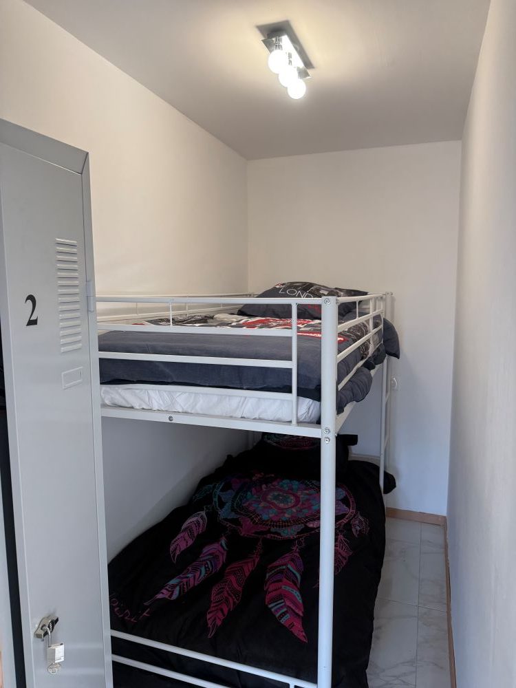 El estudio dispone de un luminoso salón con 1 cama de 160 cm y una zona de dormitorio independiente con 2 literas de 90 cm.