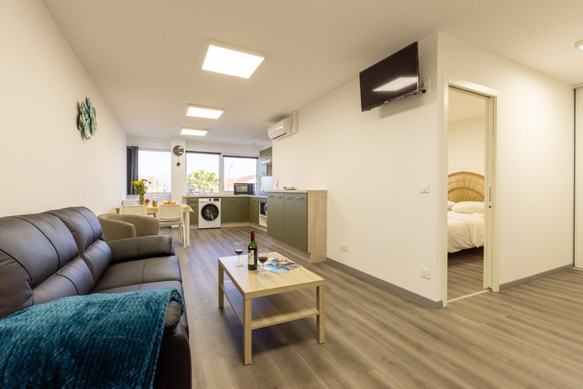 Este flamante apartamento T2, clasificado 3*, está situado en la 1ª planta con ascensor. Está decorado con esmero y adaptado para personas con movilidad reducida, y ofrece todas las comodidades necesarias para una estancia agradable.