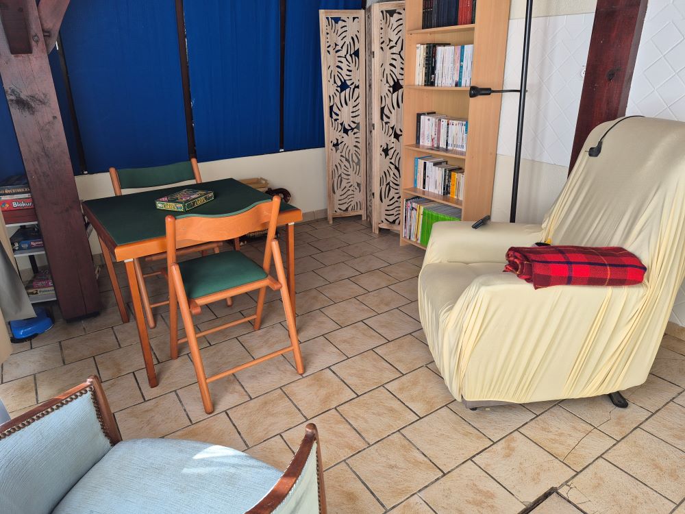Todas las comodidades modernas, con jardín privado, veranda convertida en sala de juegos, estanterías bien surtidas, reproductor de DVD y películas.