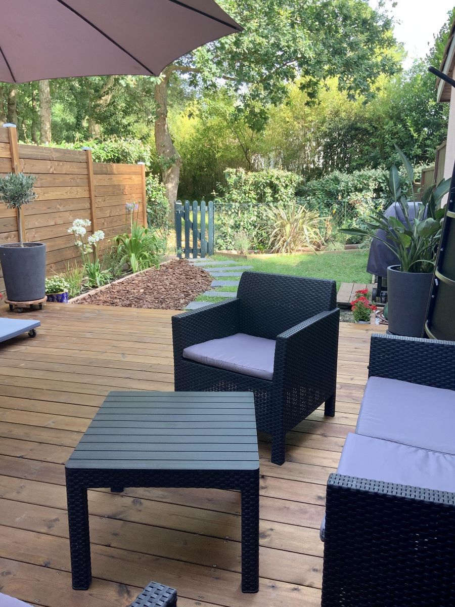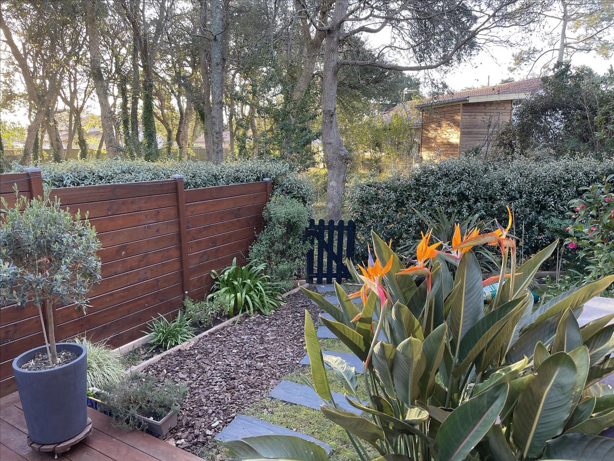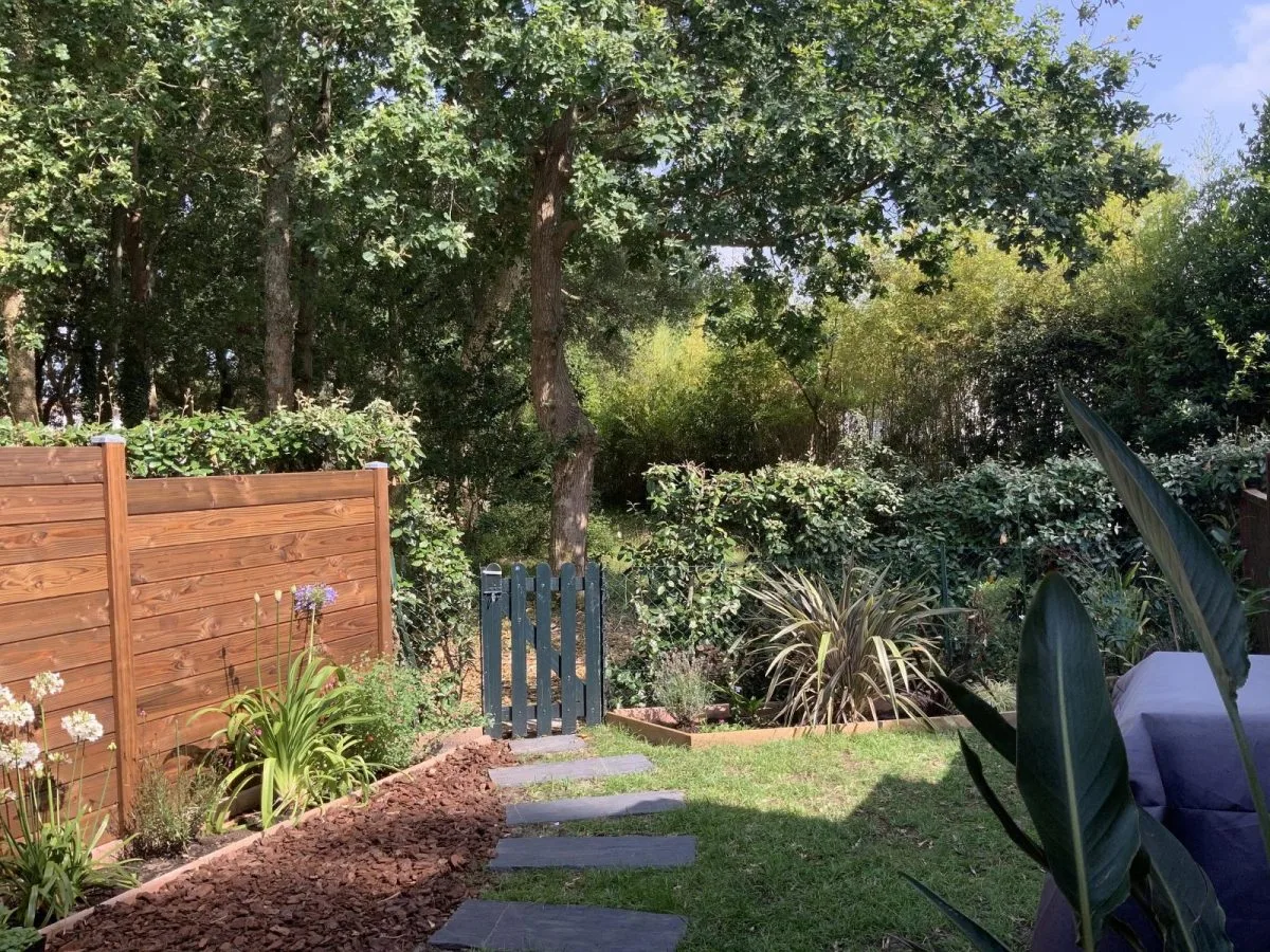 Tranquilo y descansado chalet adosado con su propio jardín privado con vistas a una zona boscosa muy agradable. La proximidad de "todo", pequeñas y grandes tiendas, pueblos, playas, pequeños bosques y selvas, varios mercados, parque deportivo, parque de patinaje, campo de golf, pistas para bicicletas, cerca ofrecen todas las ventajas para pasar unas vacaciones sencillas con amigos, familia o amantes. La casa está bien equipada con plancha, aparcamiento, cama de bebé y trona bajo petición.