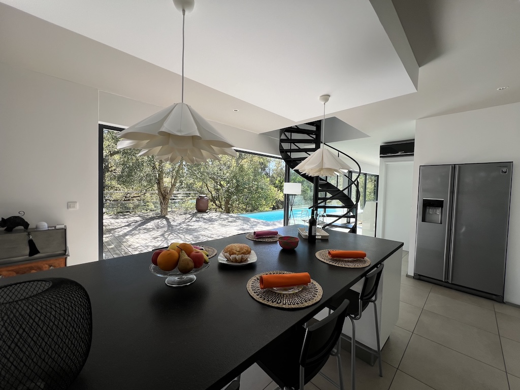 Con unos 120 m² distribuidos en dos plantas, Villa Stelna cuenta con dos elegantes dormitorios en la planta baja, un moderno cuarto de ducha, una cocina totalmente equipada y un acogedor salón. El salón está orientado hacia el sur gracias a grandes ventanales que bañan la casa de luz natural y ofrecen vistas panorámicas a la piscina y al jardín. En la planta superior, dos amplios dormitorios con vestidor disponen cada uno de su propio cuarto de ducha privado, lo que garantiza la intimidad y el confort de cada ocupante. La villa está totalmente climatizada, con persianas eléctricas en todas las habitaciones para un confort óptimo. Le encantará el elegante diseño de la villa, sus materiales de calidad, su refinada decoración, su excepcional luminosidad y sus espacios acogedores. Todo ello en un jardín de 1.100 m² que ofrece tranquilidad, autenticidad y un cambio de aires.