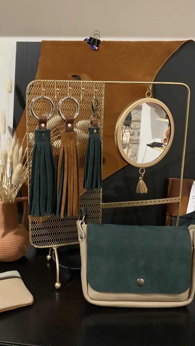 L'Atelier de la Maroquinière, que fabrica sus artículos de forma artesanal con pieles procedentes de curtidurías locales que respetan el medio ambiente. Bolsos, accesorios con pieles compradas en curtidurías francesas. El cuero no es recuperado de la despoblación, sino que es un cuero de primera calidad, de plena flor, de curtido mineral o vegetal.