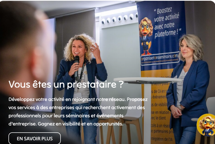 Organisetonseminaire.com est une plateforme nationale de référencement de prestataires de l'évènementiel professionnel. Etre référencé sur organisetonseminaire.com, c'est bénéficier d'une visibilité accrue auprès des entreprises à la recherche de partenaires fiables. Organisetonseminaire.com est partenaire de Landes Destination Affaires.